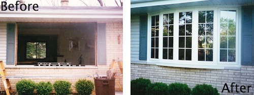 Bay windows are comprised of three or more windows, typically featuring a large center unit and two flanking units at 35° or 45° angles to the wall.